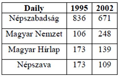Table 1. Number of readers of Hungarian Dailies (thousand)